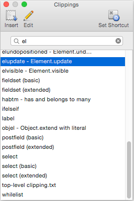 - New Clippings system mechanics - The Clippings system (used for creating, managing, and applying frequently used “snippets” of text) is now even more powerful and flexible. Any clipping set can be made available universally or on a per-language basis (for any desired set of languages). The Clippings palette, text completion system, and the “Insert Clipping” command have been extended to support this additional flexibility.