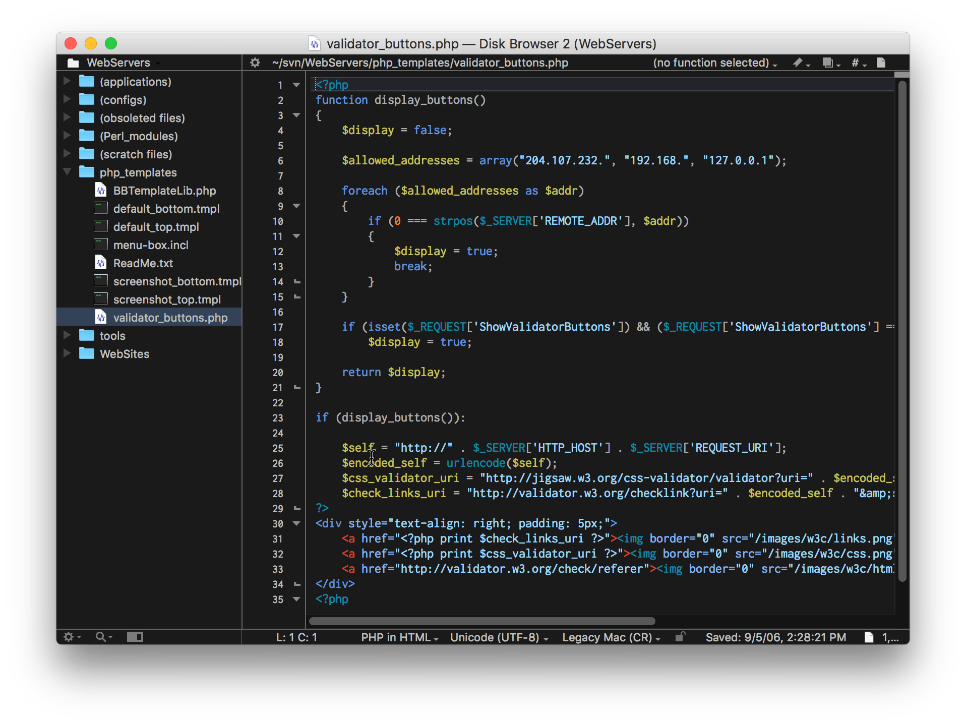 Here’s a disk browser showing off the “BBEdit Dark” color scheme:
