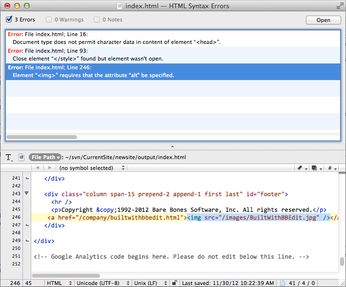 You can verify the correctness of your code even in partial documents, in documents with generated content, even in documents using server-side includes! You can also mark portions of documents to skip when checking syntax.