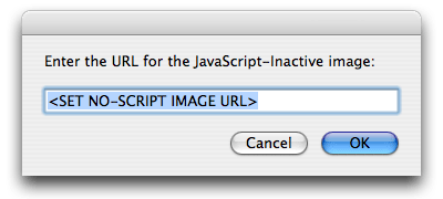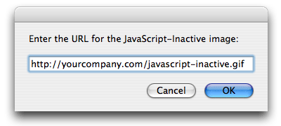 Click the Set URLs button to summon the dialogs for entering the URLs of the JavaScript file and NO-SCRIPT image you placed on your web server.