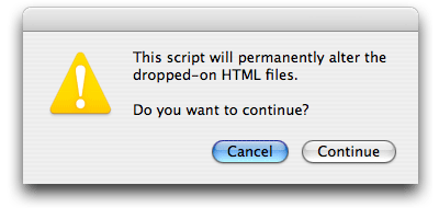Since the changes which the script makes to files cannot be undone, we strongly recommend that you work on a copy of your site. The script will process either any individual files which you drop onto its icon, or all the files within any nested folders whose containing folder you drop onto its icon.