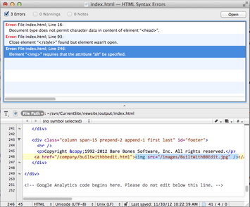 The HTML syntax checker makes it easier to verify syntactic correctness in HTML/XHTML source files that contain embedded scripts (for example, embedded Perl or PHP), as well as in source files that are not complete HTML/XHTML documents (such as those that will be merged with page template files).